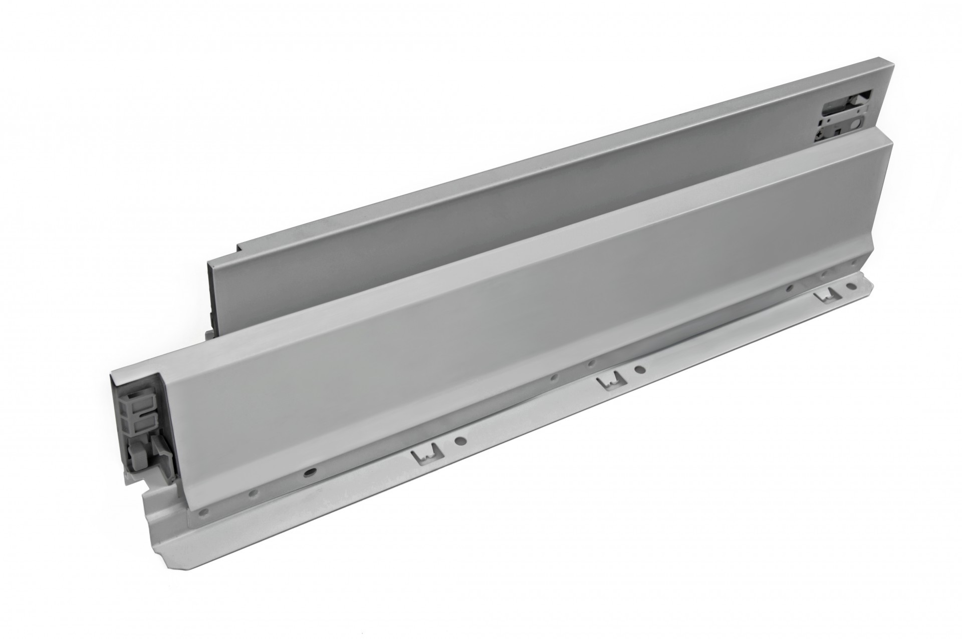 Традиционные боковины для стандартного ящика представлены в вариантах монтажной длины от 270 до 500 мм в двух цветах: белый и серый.
