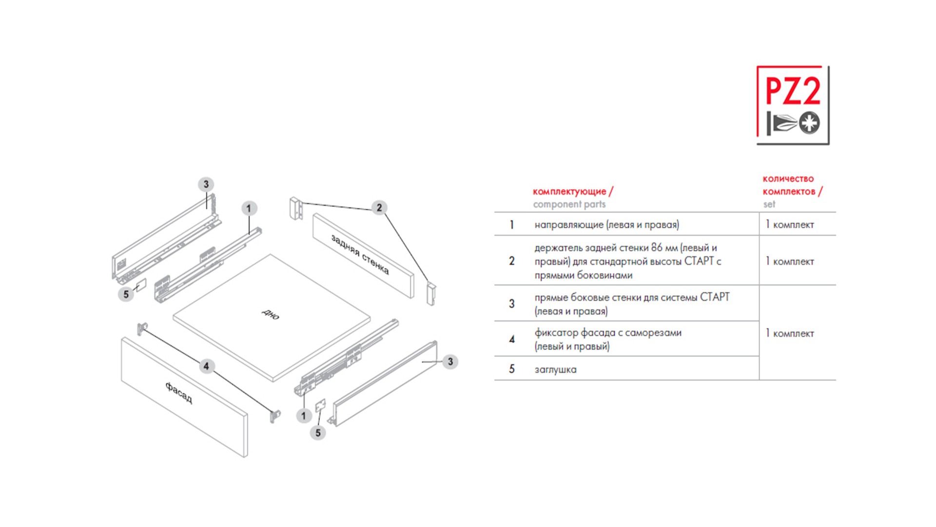 - Держатель задней стенки 86 мм (левый и правый) для стандартной высоты СТАРТ с прямыми боковинами