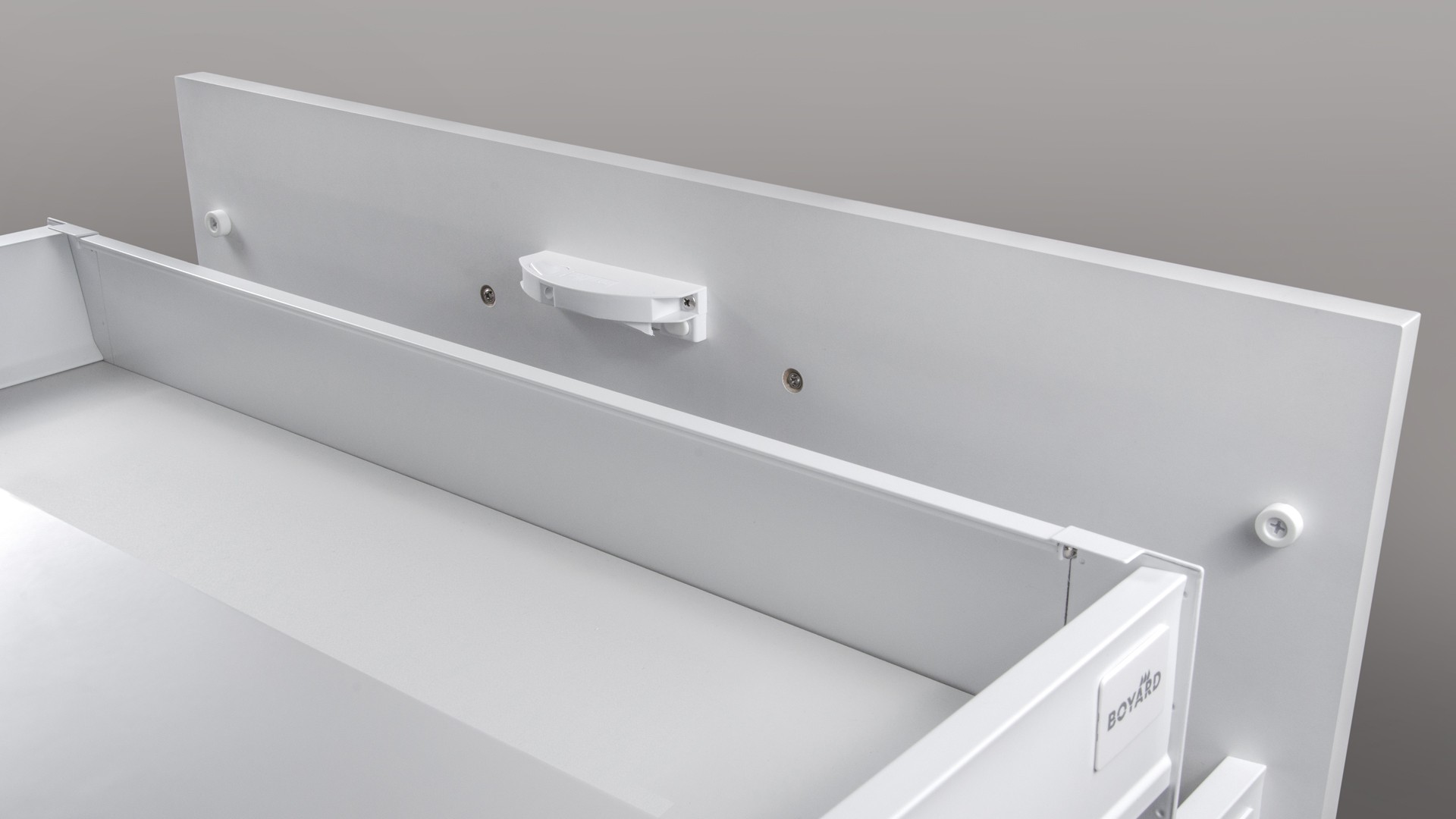 Модель имеет продуманный скруглённый корпус со специальным механизмом, который обеспечит безопасное синхронное открывание внутреннего ящика и ящика с фасадом.