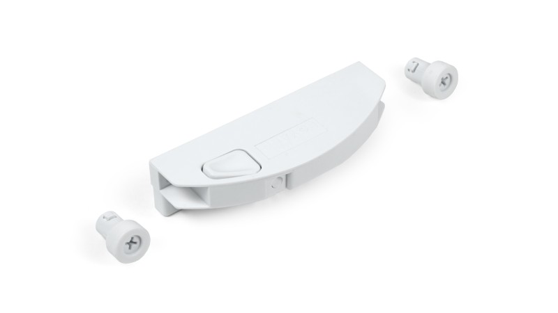 Держатель легко закрепляется на саморезы (идут в комплекте держателем) с обратной стороны фасада, и надёжно фиксирует внутренний ящик, а одним нажатием кнопки отпускает его.