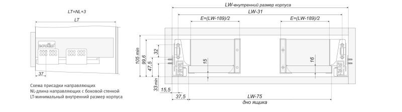 Системы выдвижения с двойными металлическими боковинами / GR - Серый