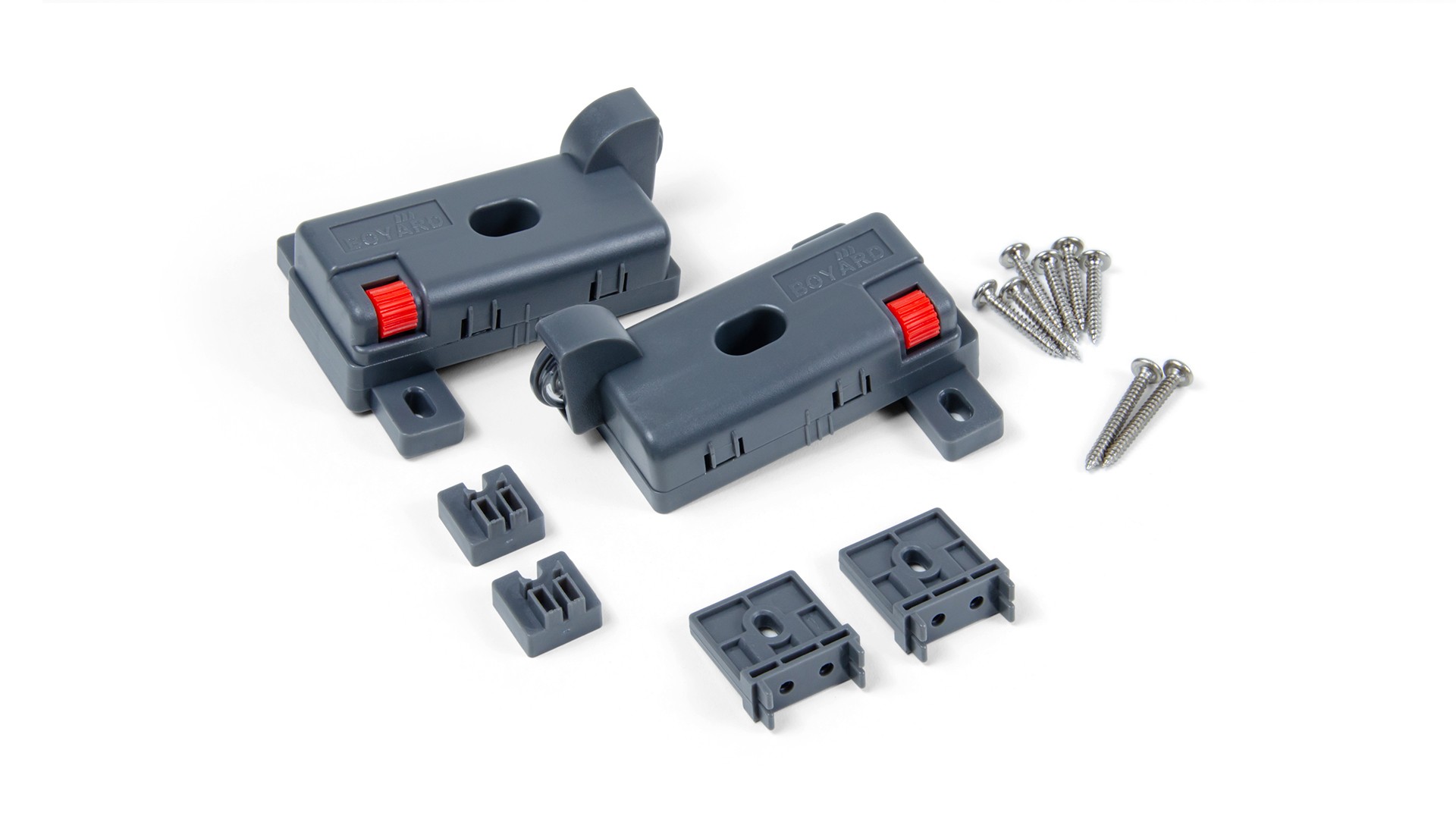 В комплекте: левый и правый стабилизатор, адаптер для крепления к системам с металлическими боковинами — 2 шт, адаптер для крепления к мебельным ящикам из плитных материалов — 2 шт, винт M3*20 — 6 шт, винт M3*27 — 2 шт.