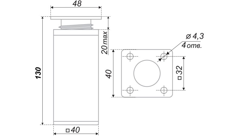 N311 — опора металлическая регулируемая (до 20 мм) с пластиковой пятой.